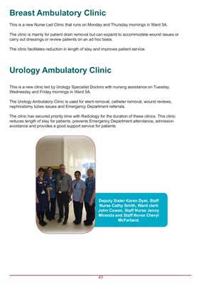 The Urology Ambulatory Clinic is used for stent removal, catheter removal, wound reviews,